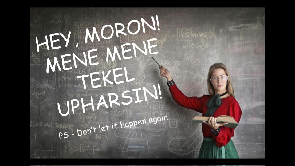 Ahem! You knuckle-dragging mouth-breathing moron. The clock is ticking, Señor Douche Bag. Do something. First, there was the deed. Or was it the word? The committee has a tough time remembering which came first. Speaking of science, any idea what caused the Big Bang? Wait, sorry. We got sidetracked.